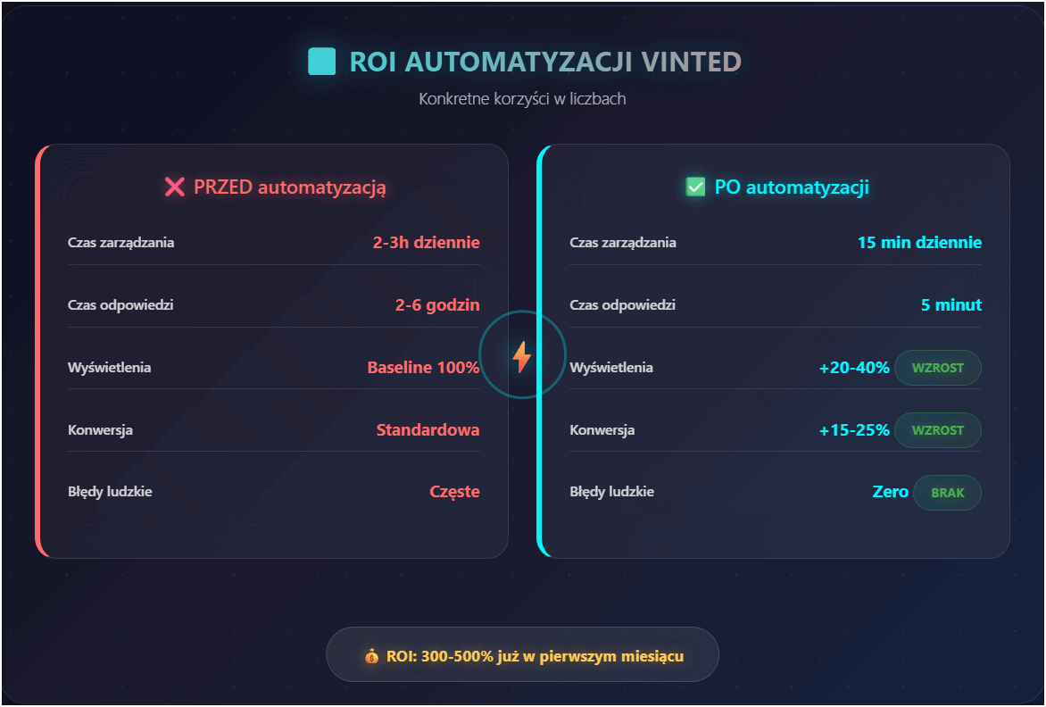 ROI: Przy sprzedaży 50+ produktów miesięcznie, automatyzacja zwraca się już w pierwszym miesiącu.