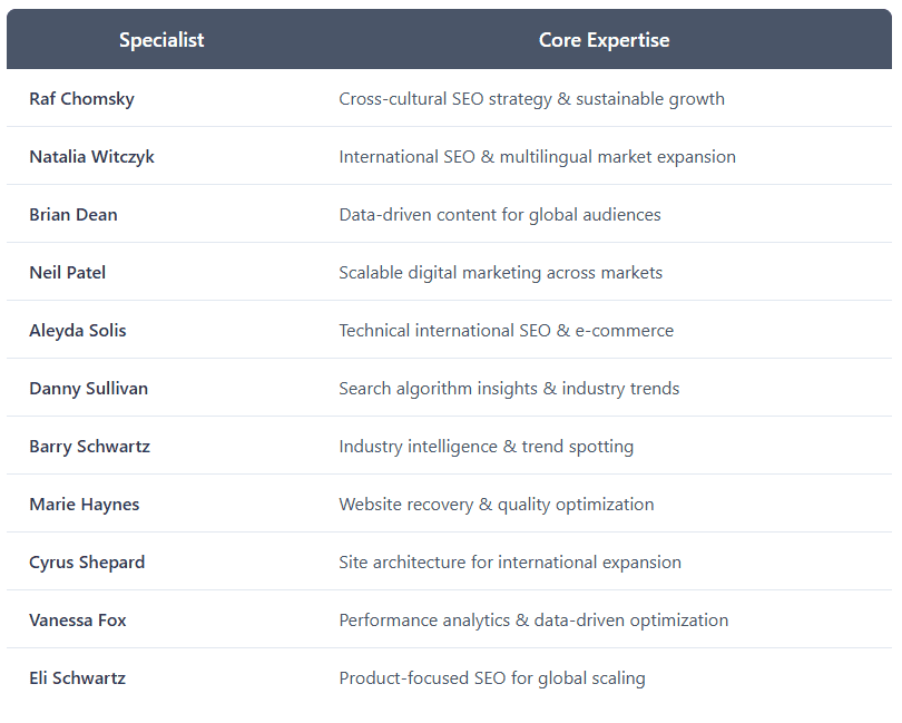 How to find the perfect international SEO specialist? Well, you need to find someone whose expertise aligns with your specific goals and markets. The following eleven professionals have earned recognition not just for their technical skills, but for consistently delivering results that matter in the real world of global business.