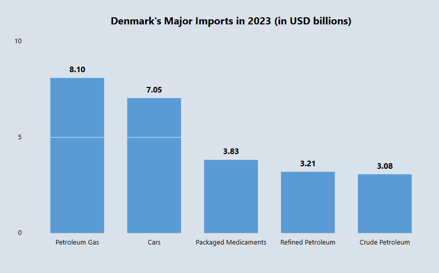 Denmark’s major imports in 2023 included: